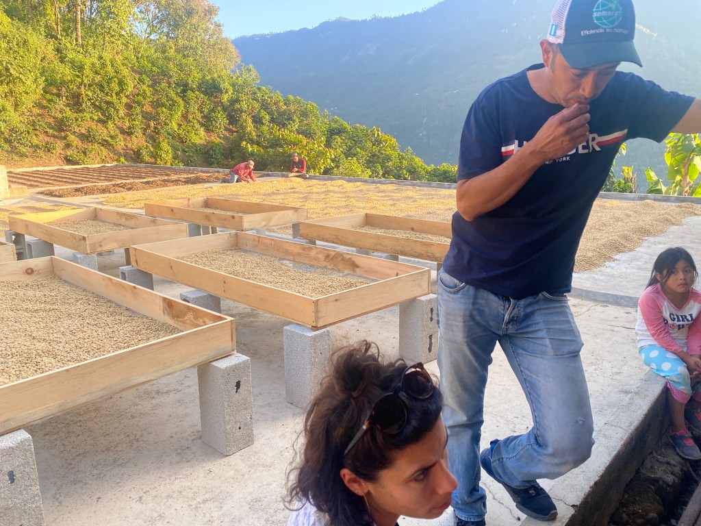 Arlam Aguirre and his partner Yoesmi are members of ASIAST, a smallholder cooperative in San Antonio Huista that is committed to ecological farming and long term soil health. Arlam is a trained agronomical engineer and former Anacafé technician, bringing deep agricultural knowledge into practice on their farm. His brother, Klisman, manages the processing and drying with equal care.